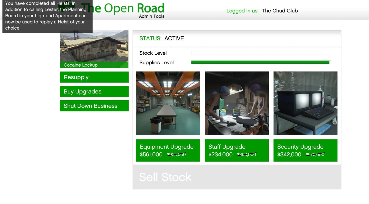 Стратегия заработка строится на пассивном доходе. Не тратьте время на кражу ингредиентов, намного выгоднее покупать их через ноутбук. Полное заполнение склада потребует инвестиций в размере 187 500 долларов (2,5 партии) и займет около пяти часов реального времени.