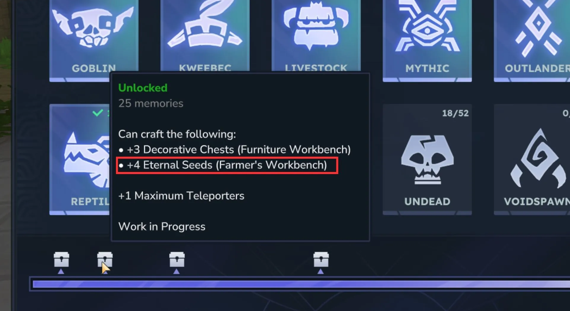 Второй способ надежнее и связан с крафтом. Восстанавливая воспоминания в Сердце Орбиса внутри Забытого Храма, вы открываете доступ к чертежам. Для создания предмета на Фермерском верстаке потребуются обычный овощ, мешок простых семян и Сущность жизни.