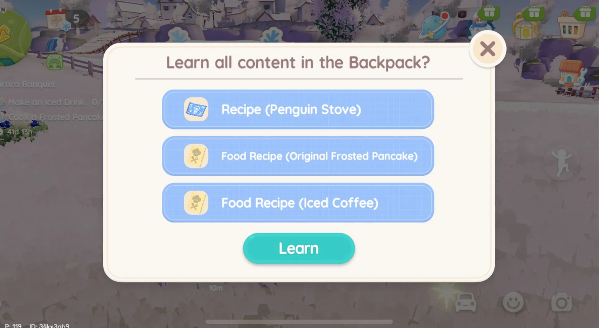 Схема крафта не попадает в рюкзак автоматически после беседы с квестодателем. Вам необходимо вернуться на свой участок и заглянуть в почту. Внутри письма находятся свиток «Ледяной напиток» и тематическая плита «Пингвин», без которой невозможно готовить ивентовые блюда. Обязательно активируйте чертеж в инвентаре для изучения.