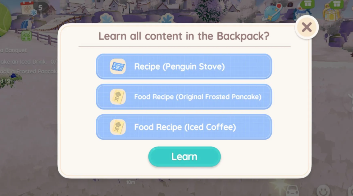 Отправляйтесь на Горное озеро с онсэном, активируйте ивент у Эрика и получите заказ от Массимо. Изучите чертеж Пингвиньей печки, соберите чернику и купите остальные продукты в магазине, чтобы испечь блины на новой плите.