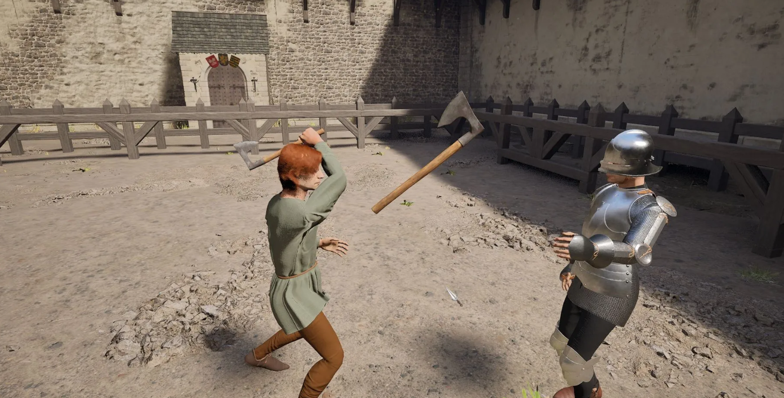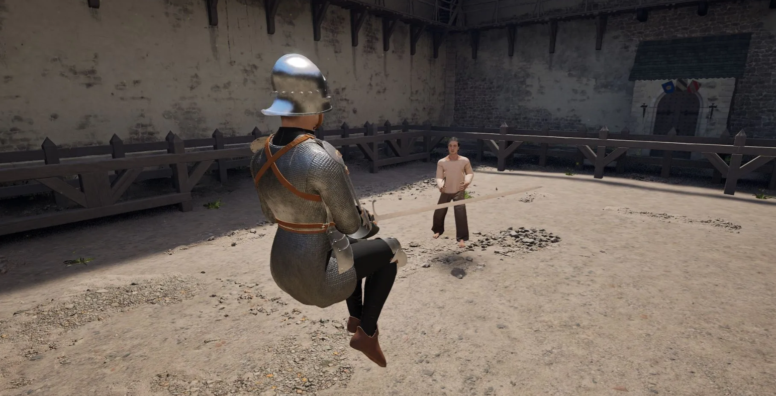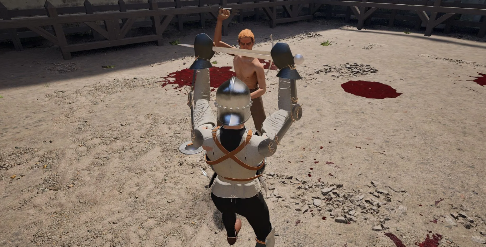 В симуляторе отсутствует привычная кнопка блока, поэтому удары отбиваются физическим перекрытием траектории атаки. Прыжок выполняется удержанием Пробела, а пинок — быстрым нажатием. Чтобы метнуть оружие, нужно раскрутить его мышью и вовремя нажать клавишу сброса предмета.
