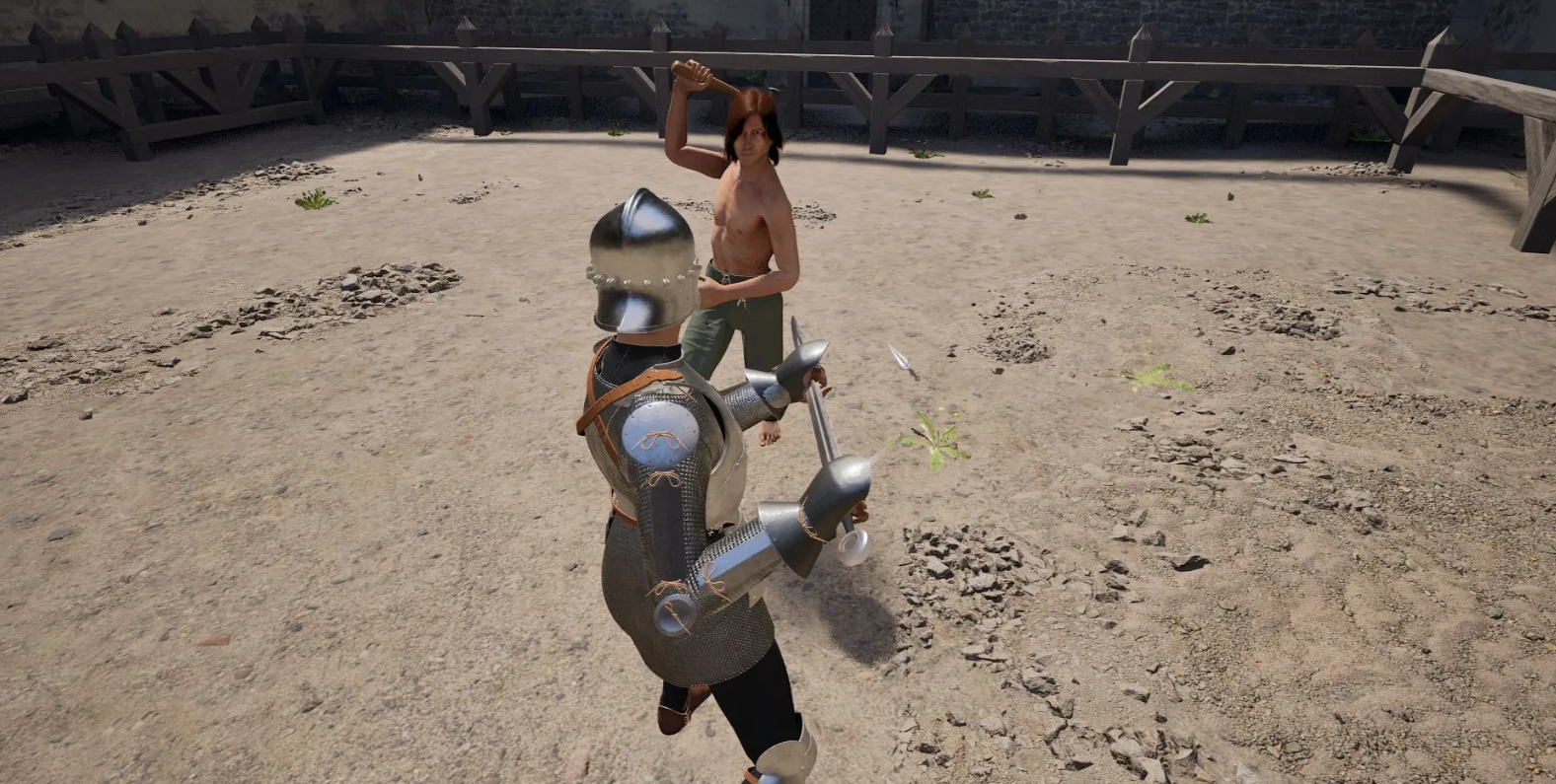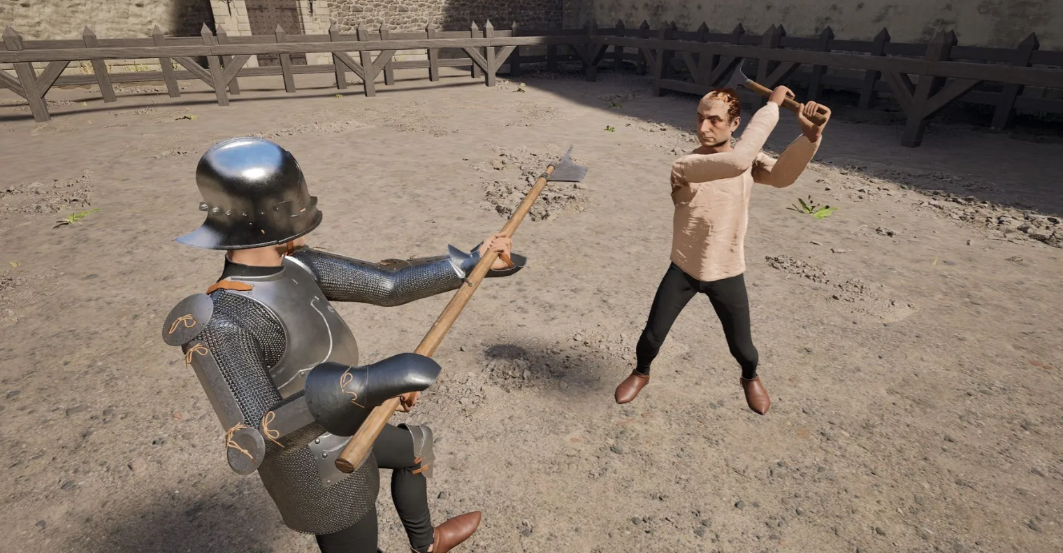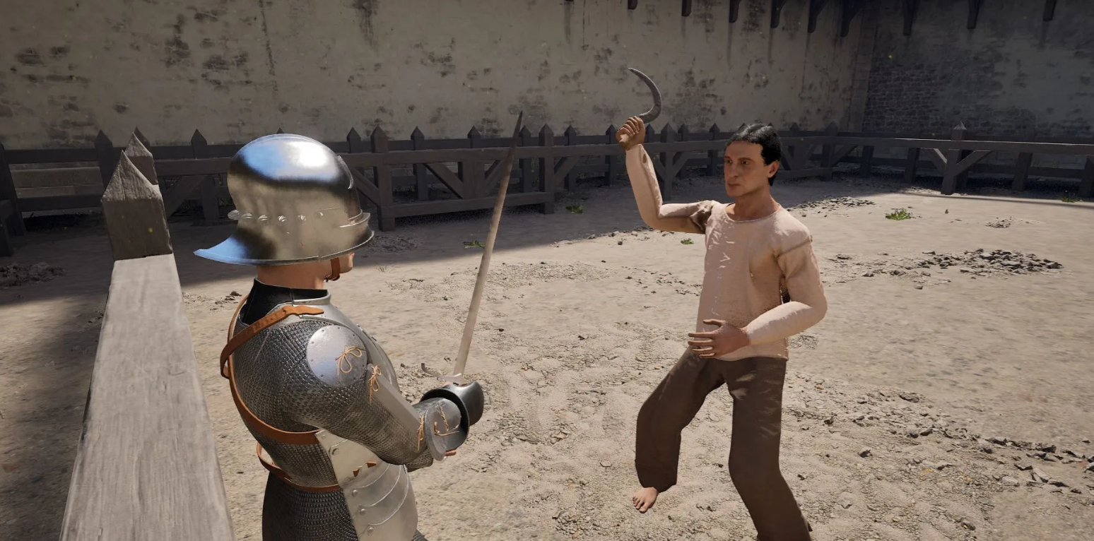 В симуляторе отсутствует привычная кнопка блока, поэтому удары отбиваются физическим перекрытием траектории атаки. Прыжок выполняется удержанием Пробела, а пинок — быстрым нажатием. Чтобы метнуть оружие, нужно раскрутить его мышью и вовремя нажать клавишу сброса предмета.