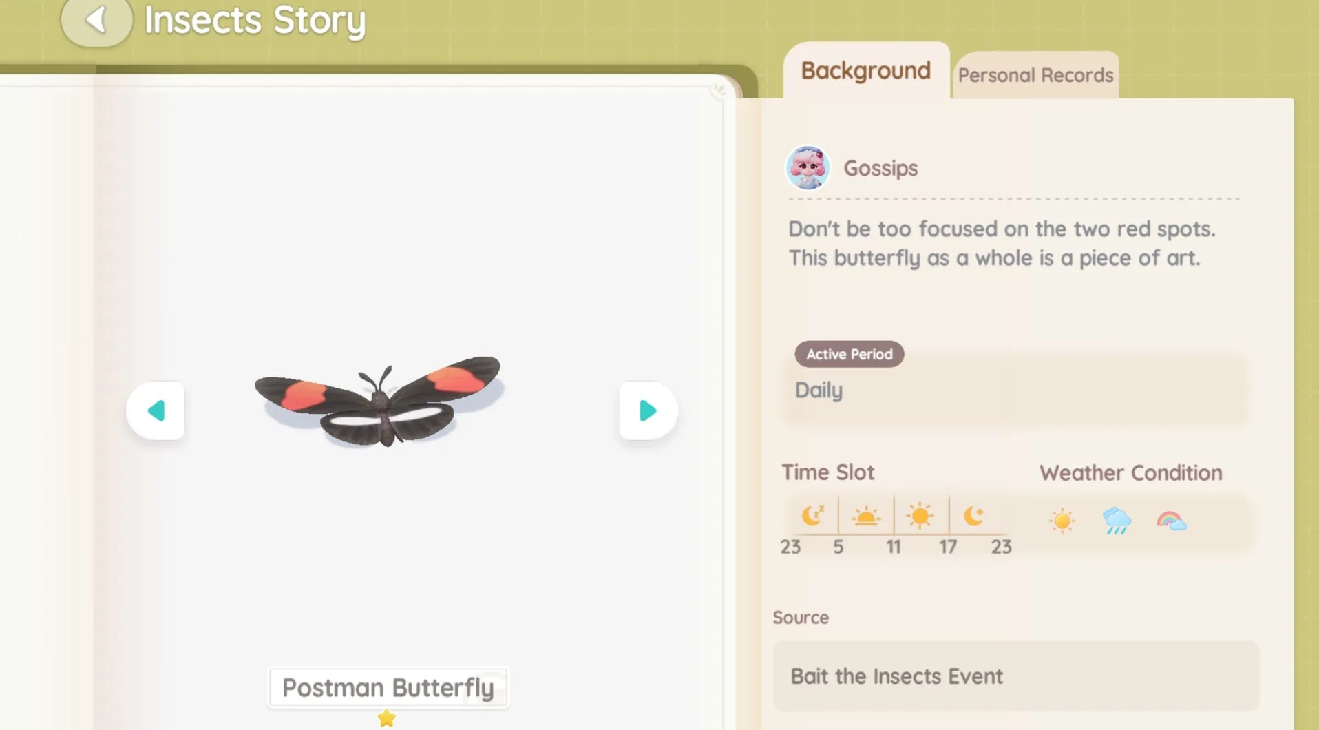 Это насекомое обитает на вершине горы Онсэн, но встретить его можно исключительно в рамках ивента «Приманка для насекомых». Для успешной охоты достаточно иметь первый уровень навыка ловли, при этом время суток и погодные условия значения не имеют.