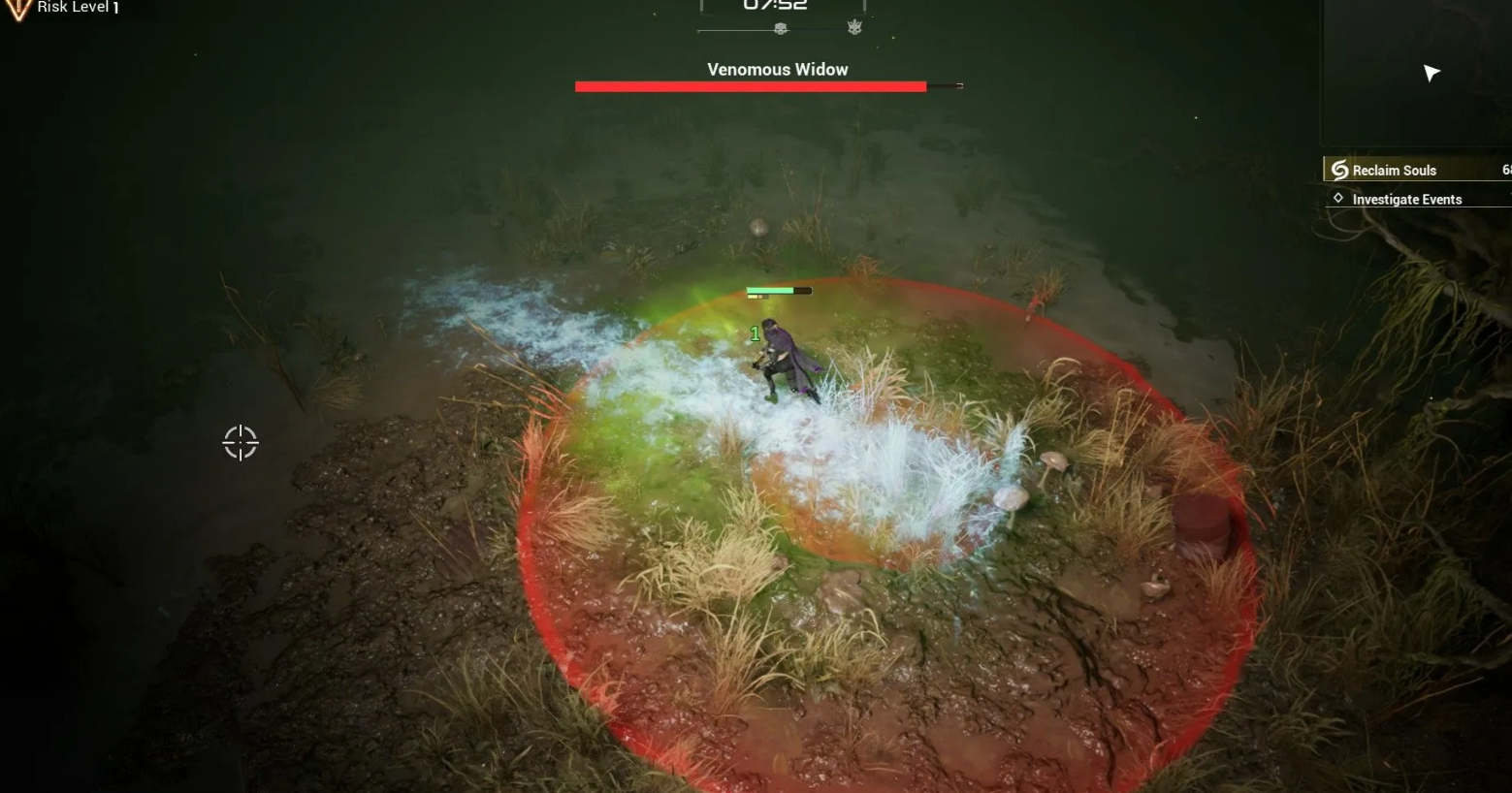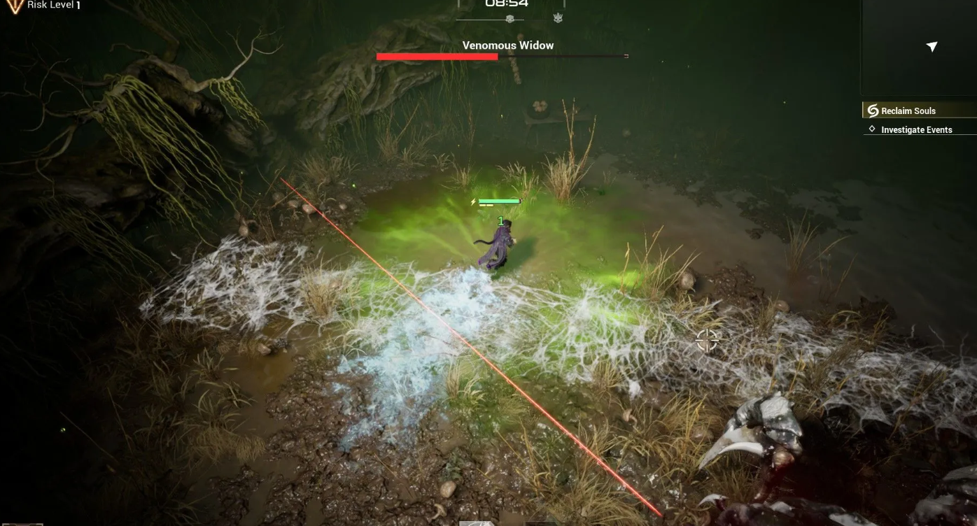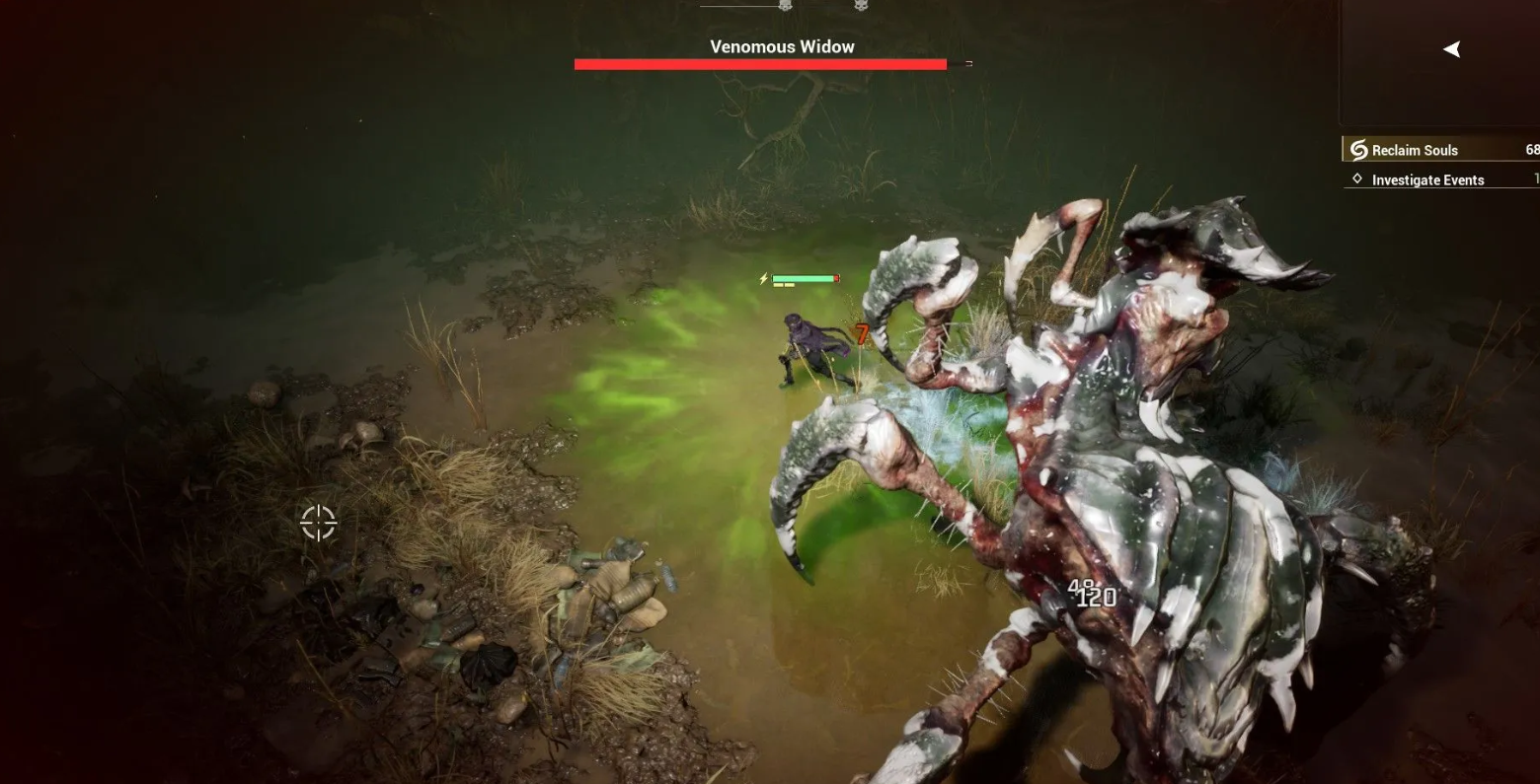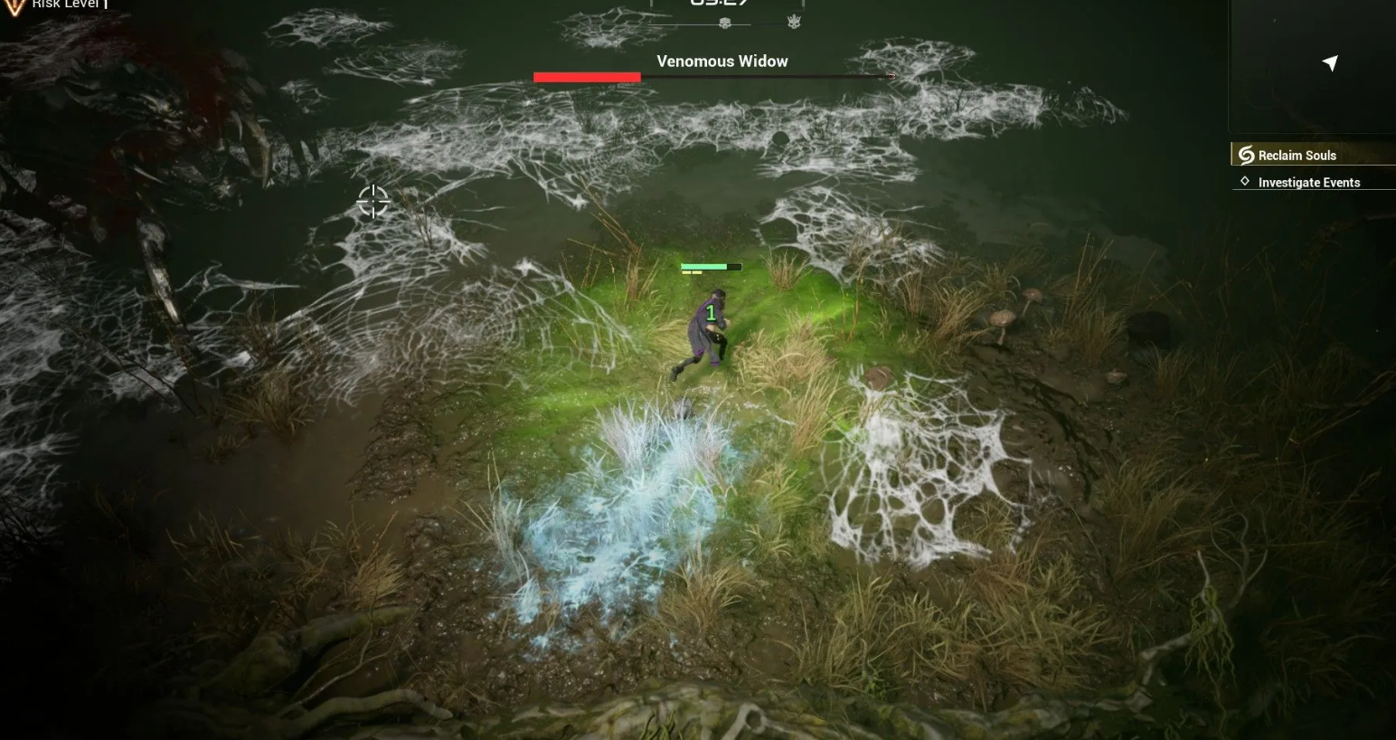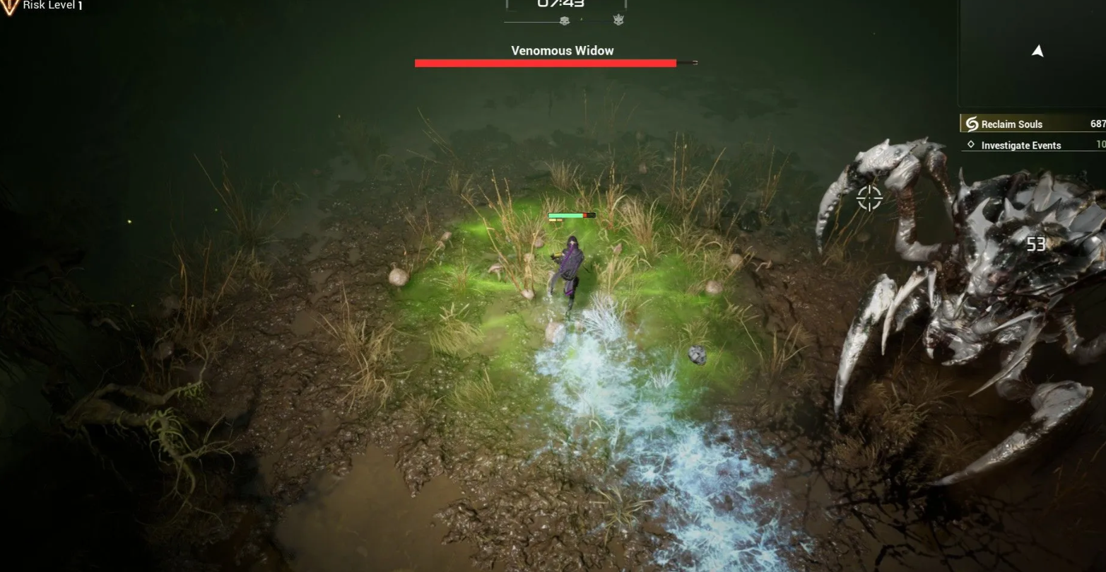 Держитесь на средней дистанции и постоянно двигайтесь, используя стартовую штурмовую винтовку для нанесения урона в паузах между маневрами. Избегайте красных зон на земле, сигнализирующих об атаке, и старайтесь не наступать в паутину, чтобы сохранить скорость бега, а замораживающие боеприпасы помогут ненадолго остановить противника.