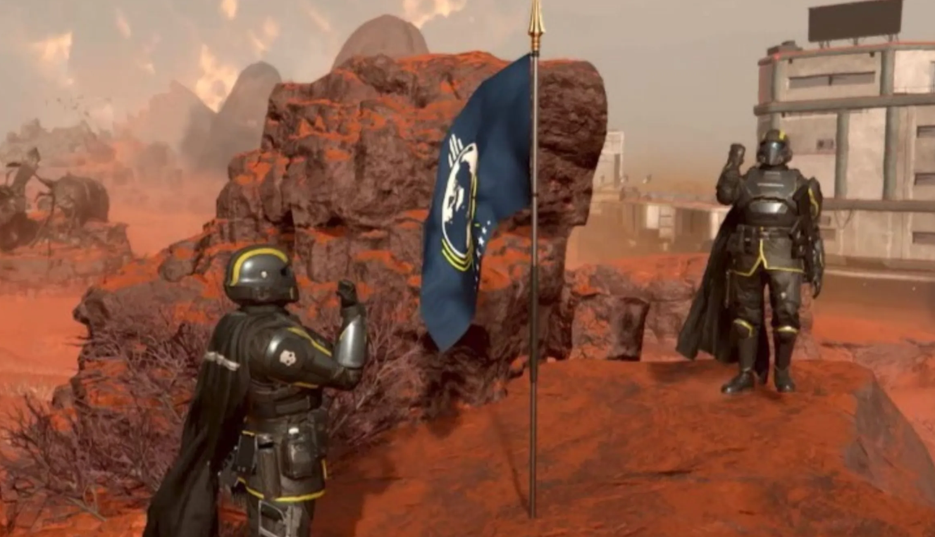 Предмет открывается на третьей странице заслуг «Мастера церемоний» за 110 медалей. Это многоразовая стратагема поддержки с бесконечным боезапасом, позволяющая использовать флаг Супер-Земли как боевое копье с оглушающим эффектом.