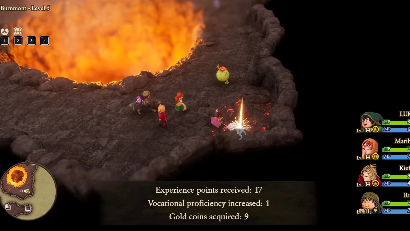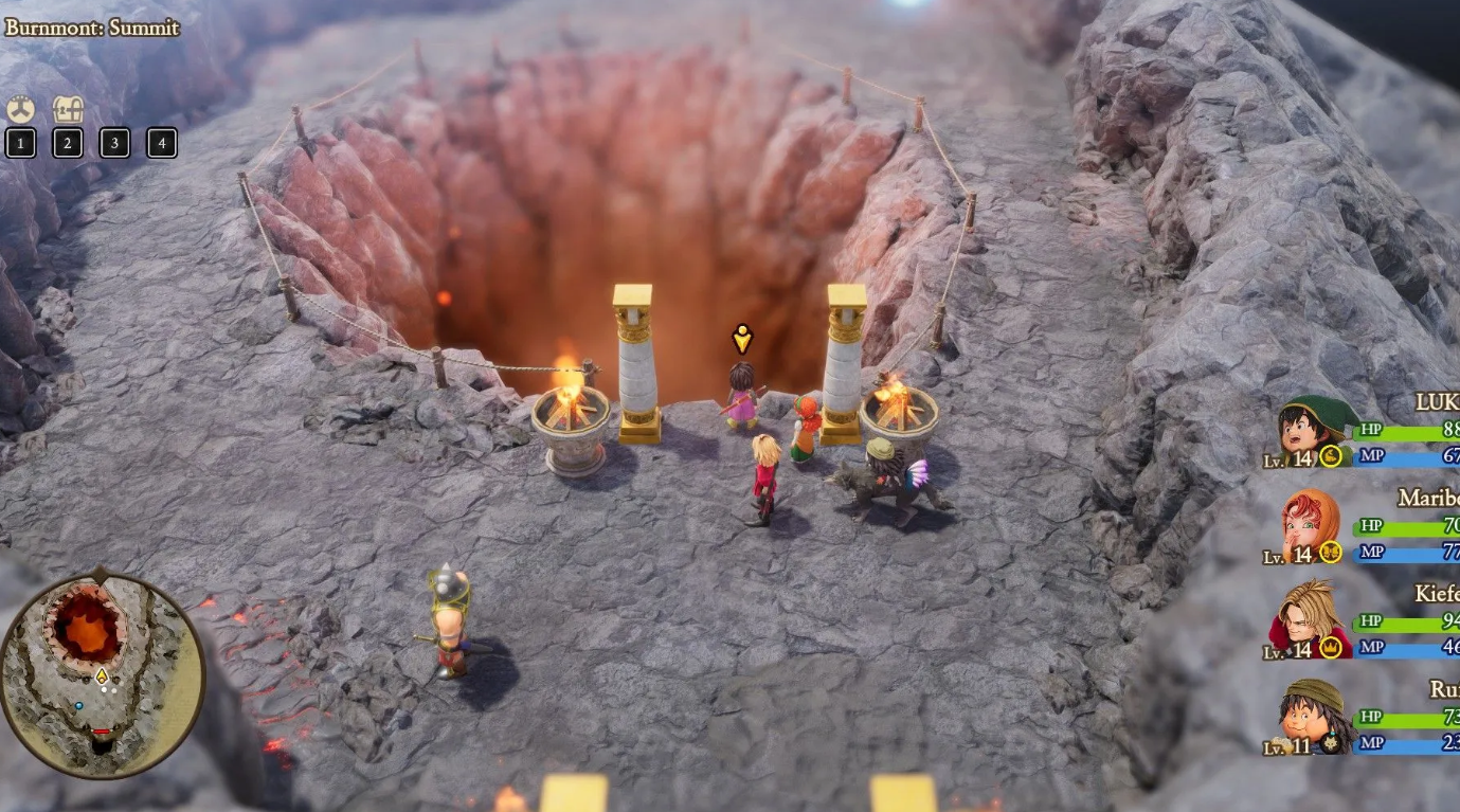Ключевая точка для гринда открывается после завершения сюжетной арки Эмбердейла и возвращения в настоящее время. Садитесь на корабль, плывите к вулкану Бёрнмаунт и поднимайтесь к кратеру, который станет отправной точкой маршрута.