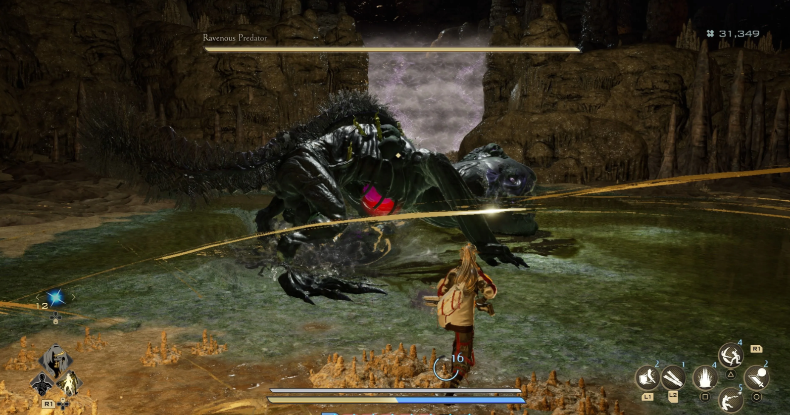 В центре подземелья обитает Ненасытный Зверь, устранение которого необходимо для выполнения квеста Лая и штурма Замка Пионеров. Остерегайтесь мощных перекатов монстра с широким радиусом поражения, а после победы обязательно осмотрите окрестности ради ценных предметов: