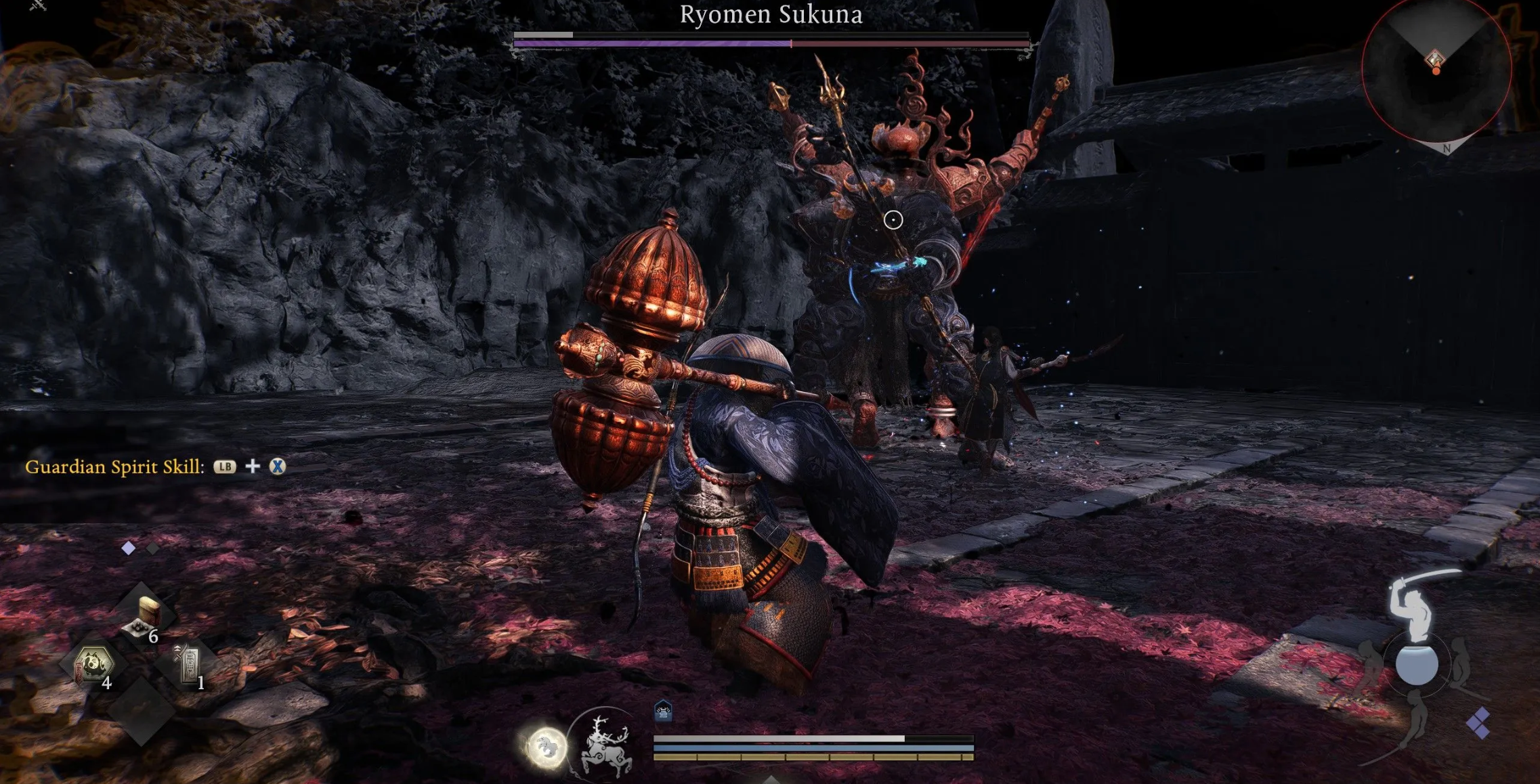 Переход в Царство Тьмы открывает новые возможности. Когда Сукуна выпускает стрелы в небо, не убегайте, а сокращайте дистанцию. В этот момент он полностью открыт для атак. Также следите за спиральным следом заряженного выстрела: уворот от него позволит безнаказанно бить врага во время перезарядки.