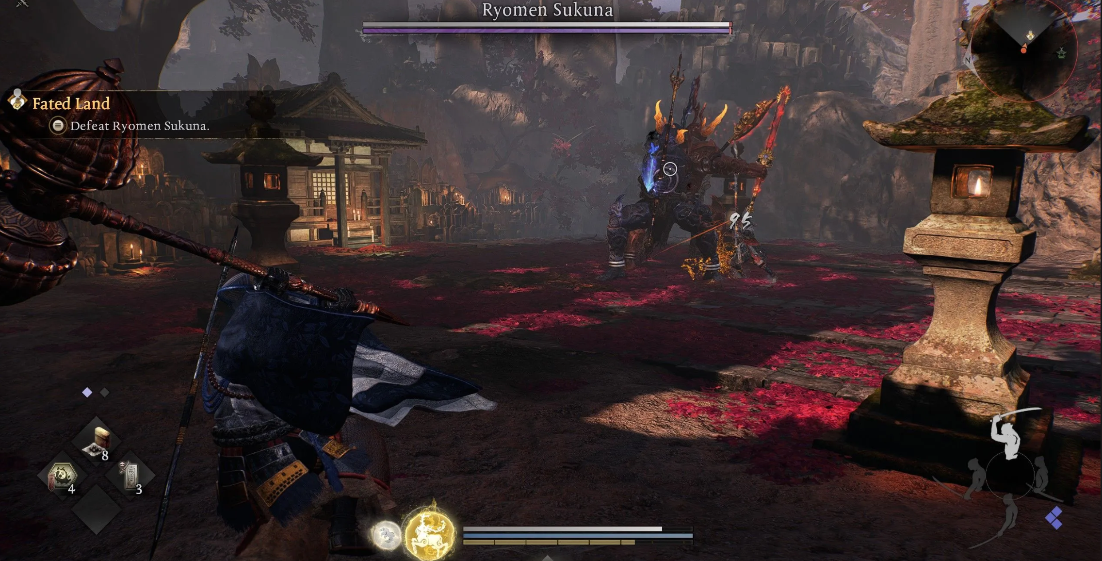 Красная ипостась намного опаснее из-за рывков, комбо-ударов клинками и призыва огненных столбов. Именно поэтому ее должна занимать Наотаро. Если ИИ не справляется, призыв живого игрока или еще одного фантома распределит агрессию врага еще сильнее.