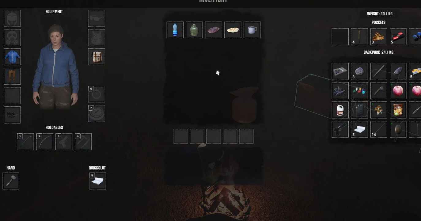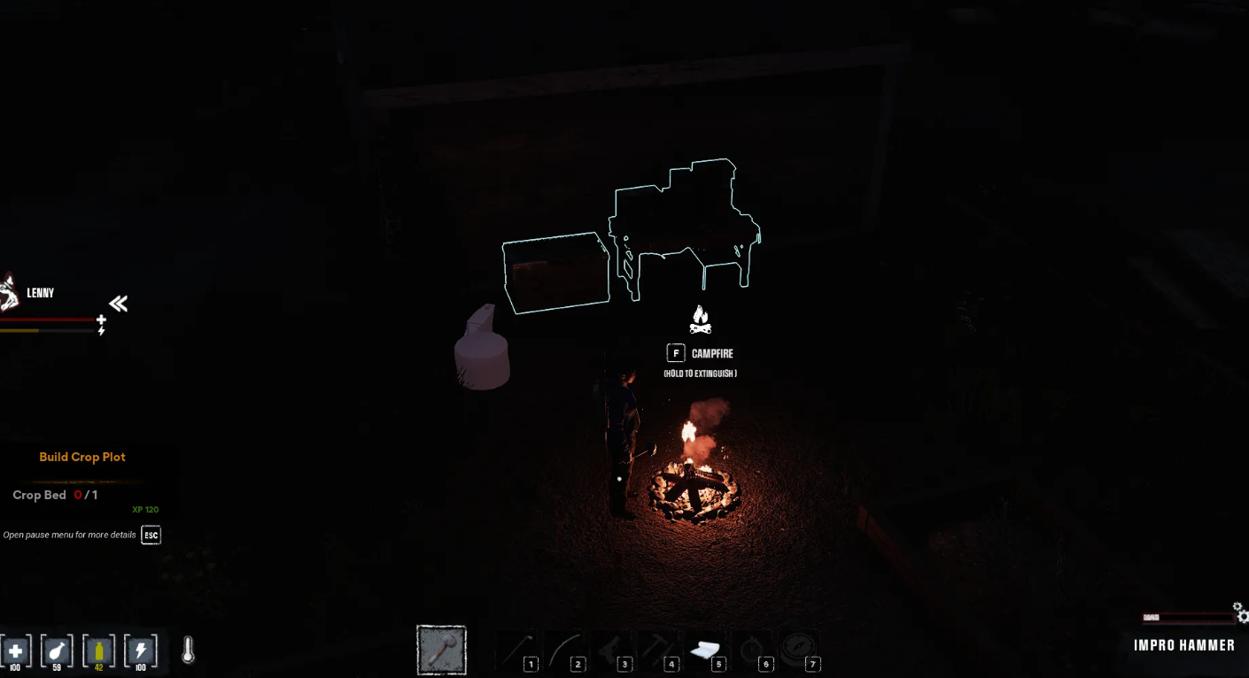 Установив макет, зажмите кнопку взаимодействия для розжига, но помните о необходимости иметь при себе источник огня, например, огниво. Нажатие клавиши F откроет меню готовки, где можно стерилизовать воду или жарить припасы.