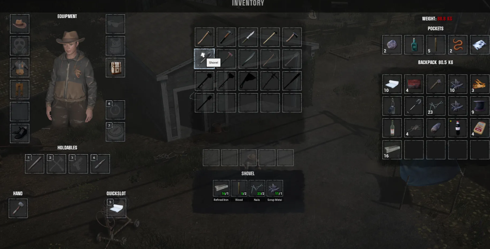 Поскольку скрафтить инвентарь сразу после спавна невозможно, придется заняться мародерством. Гарантированных точек появления предмета не существует, но шансы найти его возрастают при осмотре хозяйственных построек.