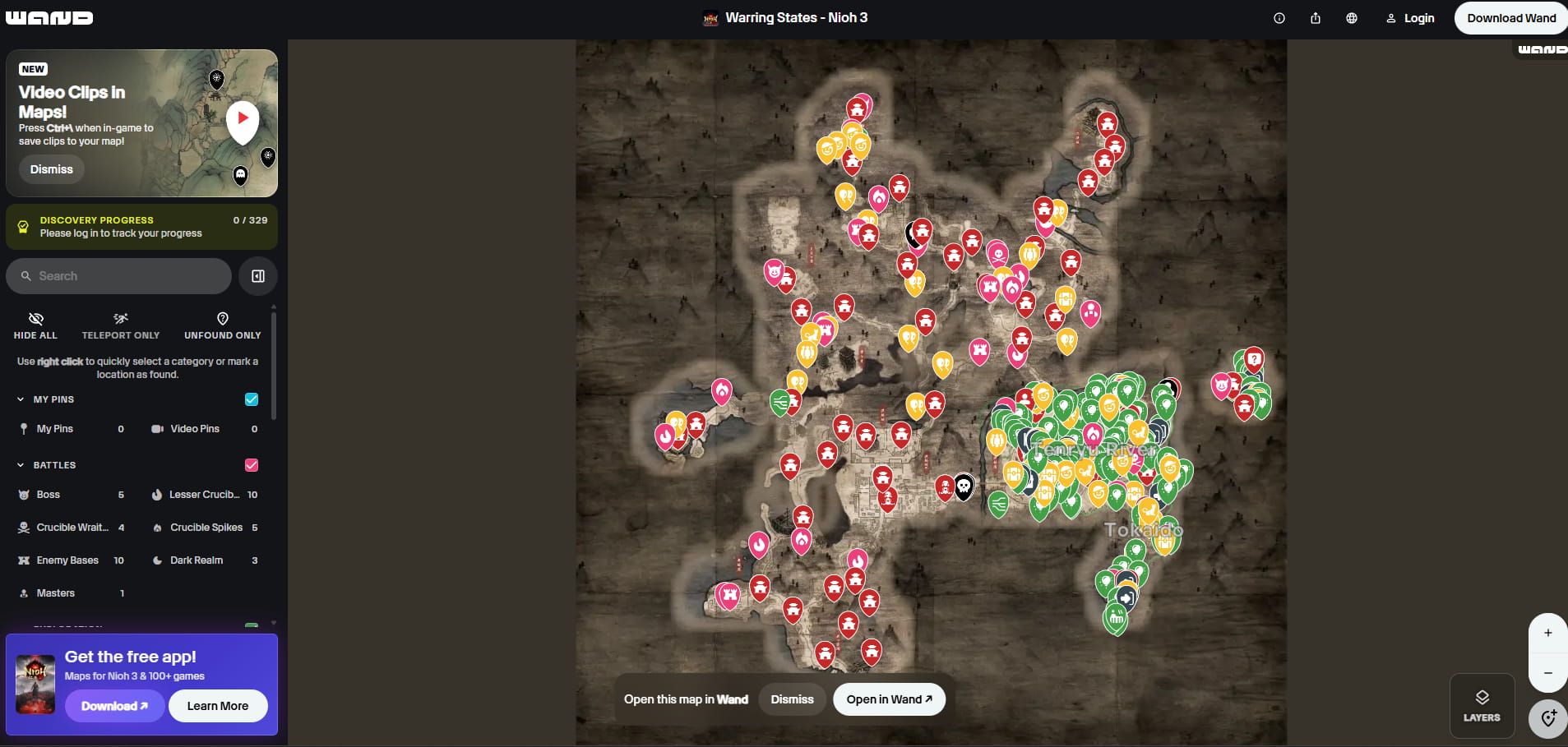 Сервис Wand интегрирован в приложение, ранее известное как WeMod. Его особенность — наличие видеоподсказок для точек интереса. На данный момент карта охватывает только регион Воюющие государства и не переведена на русский.