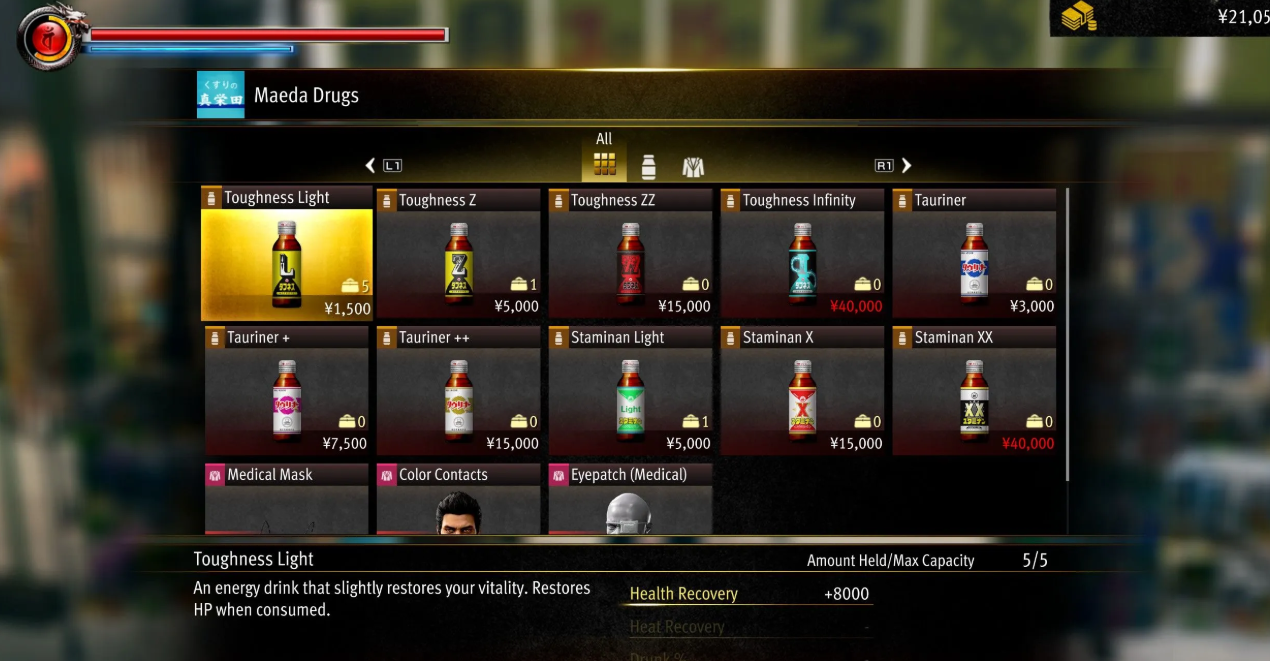 Купленные расходники попадают в рюкзак и не применяются автоматически. Чтобы использовать их, необходимо открыть меню паузы кнопкой Options и перейти в раздел Инвентарь. Там найдите категорию Восстанавливающие предметы и выберите желаемый объект. Эта функция доступна как во время спокойных прогулок по городу, так и в разгар динамичного сражения.