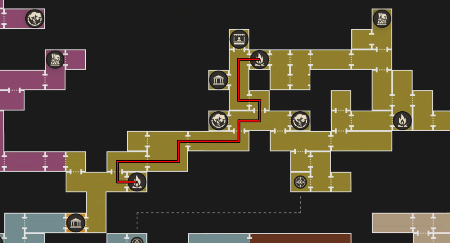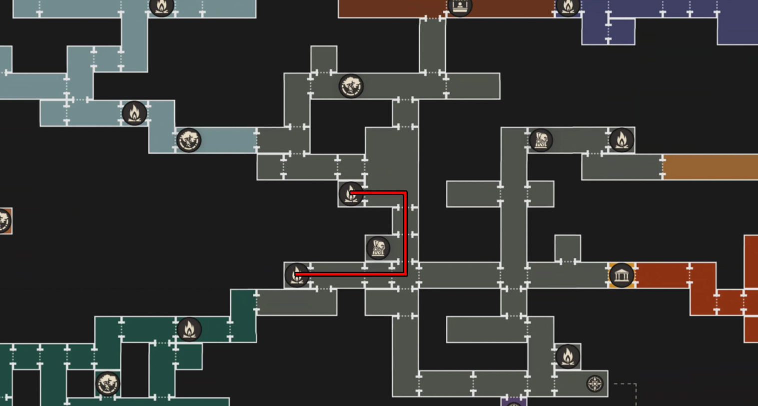 Найдите локацию с удобными противниками, расположенную между двумя точками сохранения (кострами)