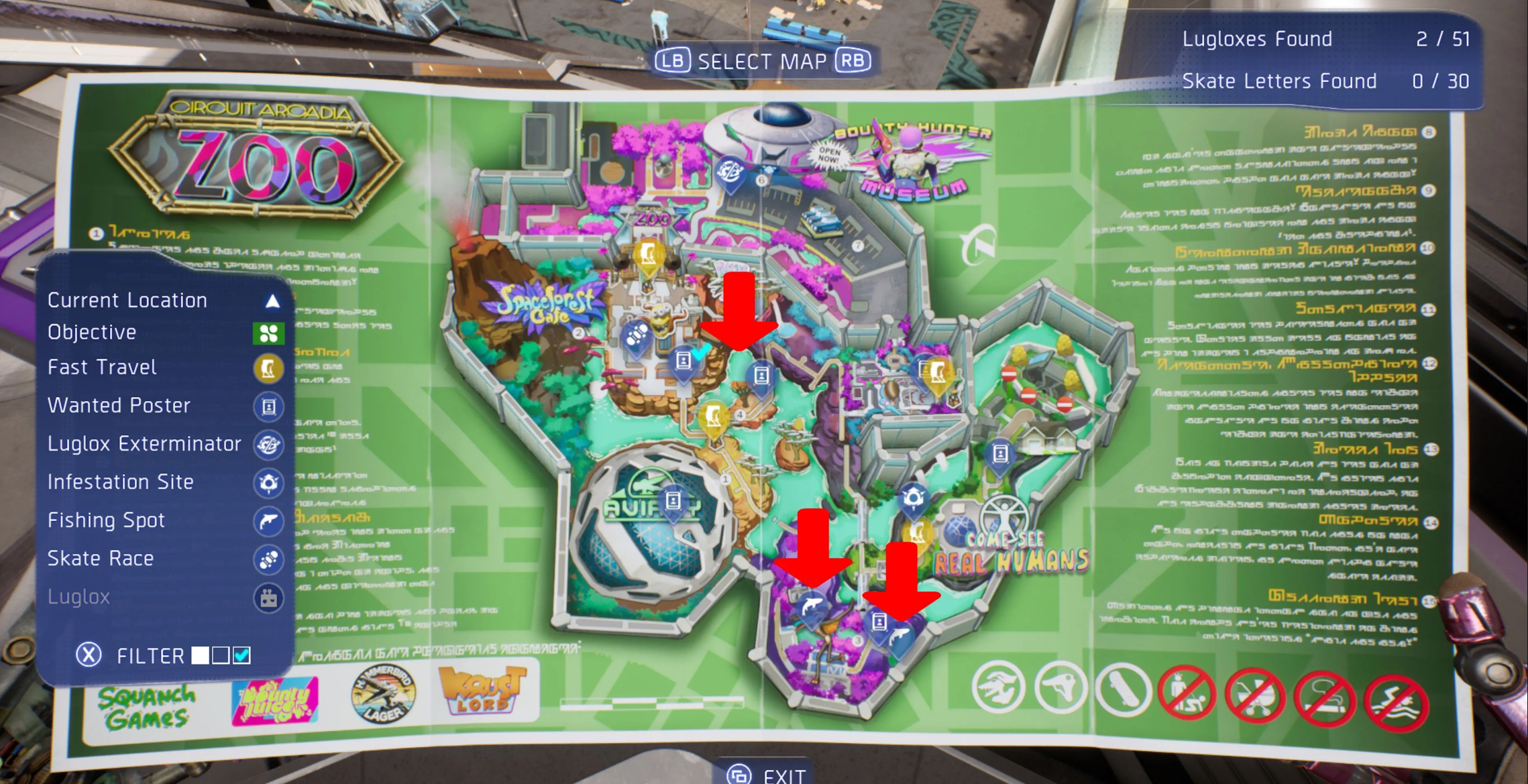 Зоопарк Циркуит-Аркадии предлагает сразу три зоны. Две из них находятся в непосредственной близости друг от друга в юго-восточном углу карты.