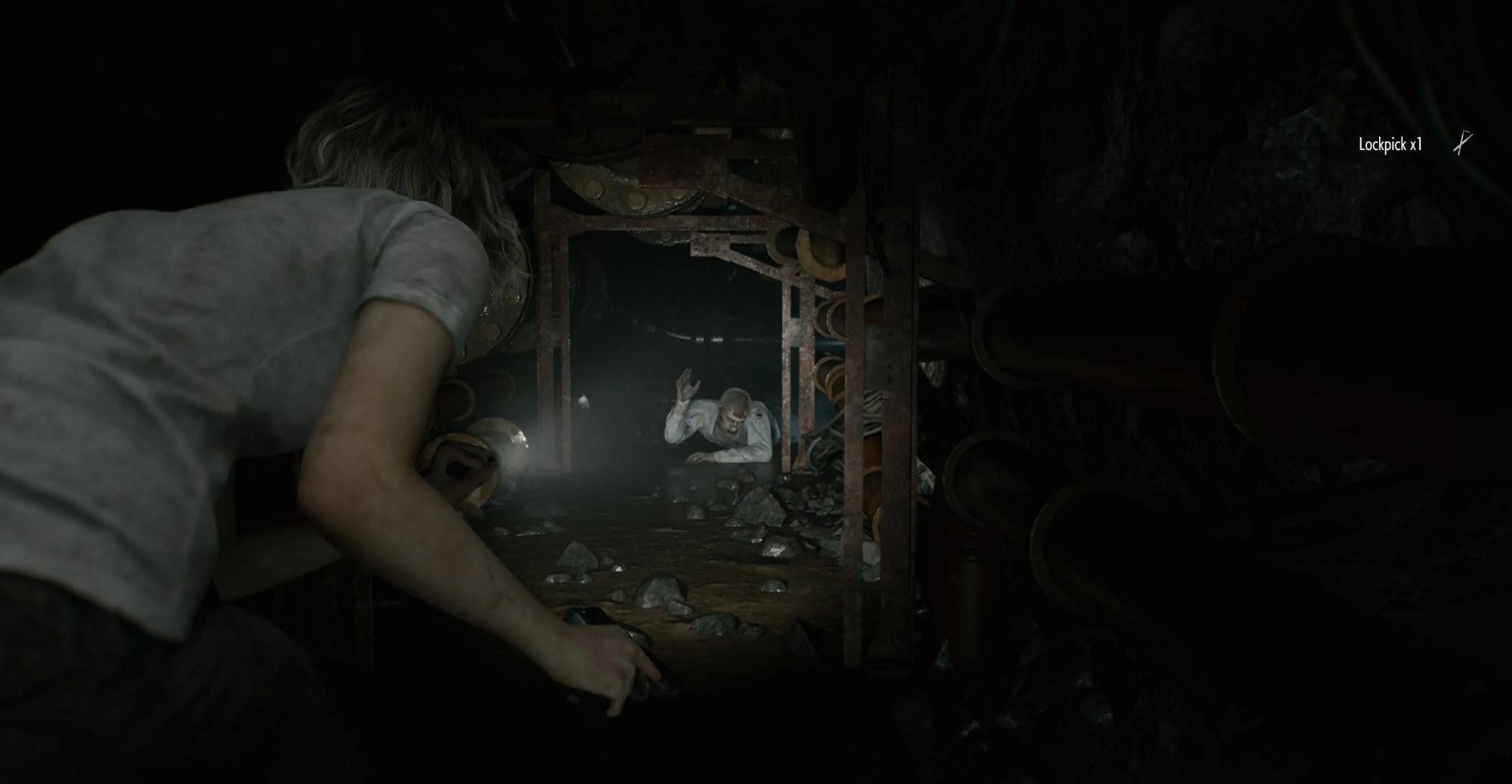 Оказавшись в мастерской к западу от тюремных камер, вы заметите наглухо заваренный люк. Грейс прокомментирует, что голыми руками его не открыть, но тратить время на поиски специального оборудования не стоит. Это препятствие устраняется автоматически, если следовать верному маршруту.
