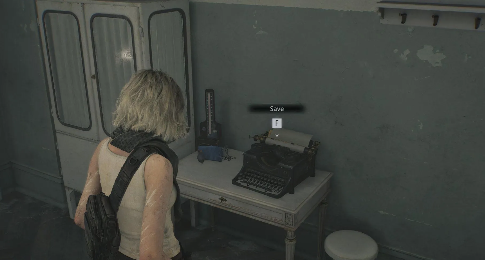 Чтобы зафиксировать достижения вручную, отыщите в безопасной зоне специальное устройство: печатную машинку для Грейс или компьютерный терминал для Леона. На легкой сложности количество записей не ограничено, но режимы «Классик» и «Безумие» требуют наличия в инвентаре расходного предмета — чернильной ленты.