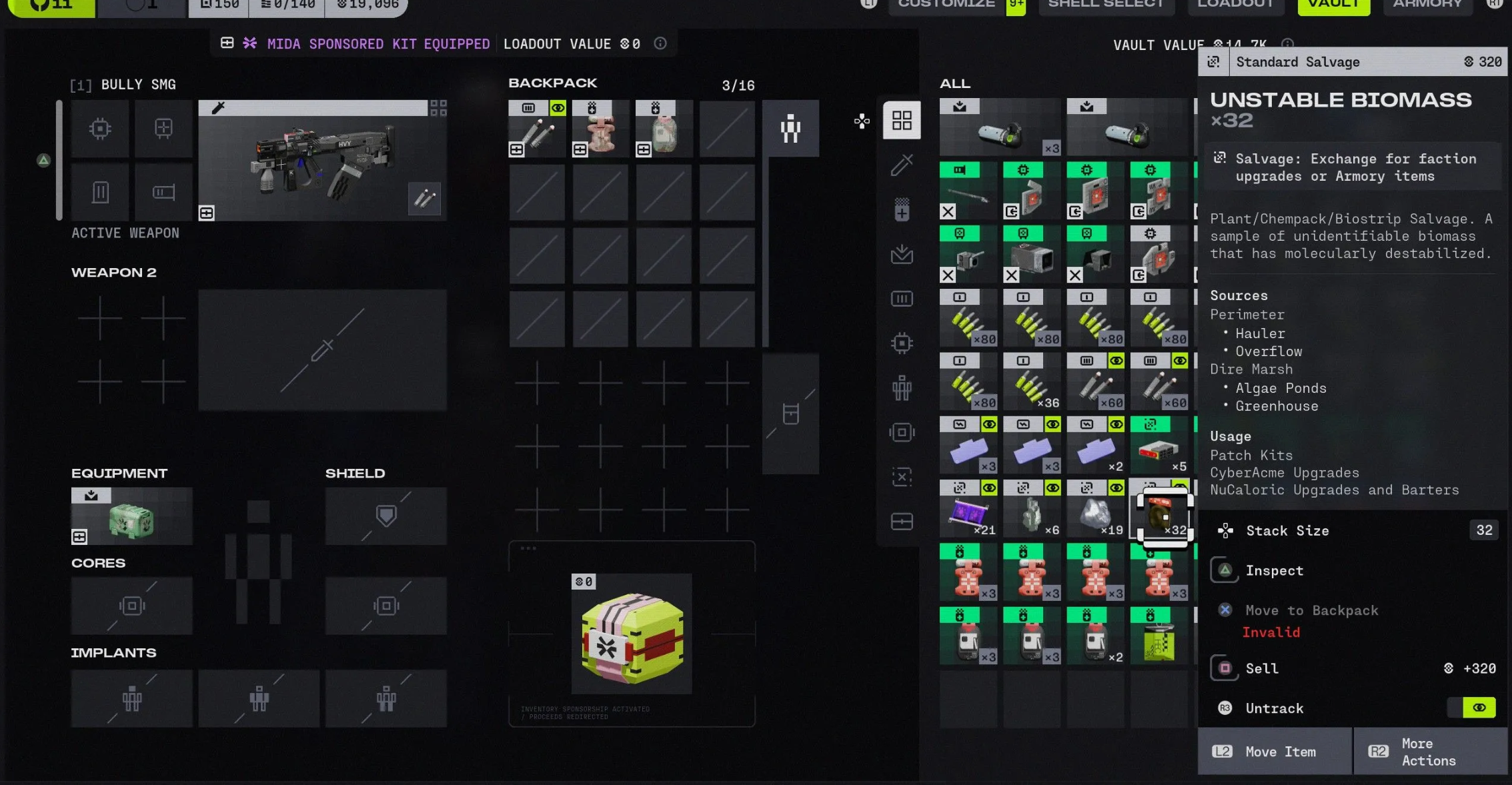 Нестабильная биомасса (Unstable Biomass) — ищите в Периметре и Топях, нужна для аптечек