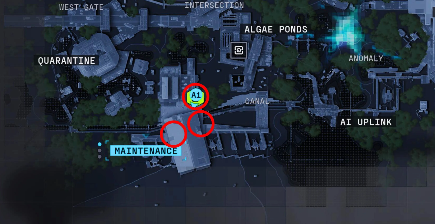 Уничтожив механизмы, заходите внутрь помещения. Поднимайтесь наверх, обыскивайте ящики и забирайте «UV-протокол». Теперь предстоит отыскать скрытые маркеры, которые не отображаются на глобальной схеме. Они разбросаны по зонам «Комплекс», «Связь с ИИ» и «Техобслуживание». Рекомендуем сразу направиться к последней локации, так как она прилегает к текущей позиции. Интерфейс подсветит нужные объекты при сближении.