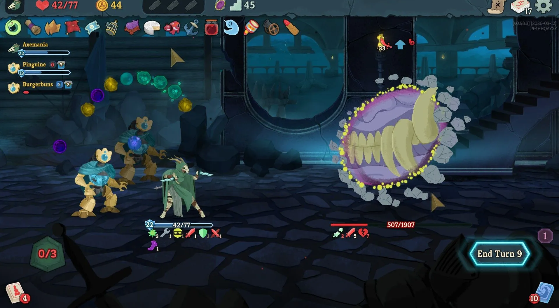 Этот элитный враг постоянно прячется за магическим щитом, сбрасывая любые негативные эффекты. Чтобы одержать верх, собирайте колоду с упором на взрывной прямой урон и стабильную генерацию брони. Затягивать поединок крайне невыгодно.