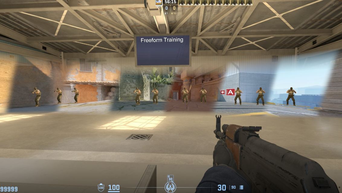 Aim Training - Training Center (CS2). Универсальный комплекс для тренировки вертикального аима. Здесь можно отрабатывать стрельбу по целям на разных высотах и дистанциях — идеально для карт вроде Nuke или Vertigo, где враги часто оказываются выше или ниже вас.
