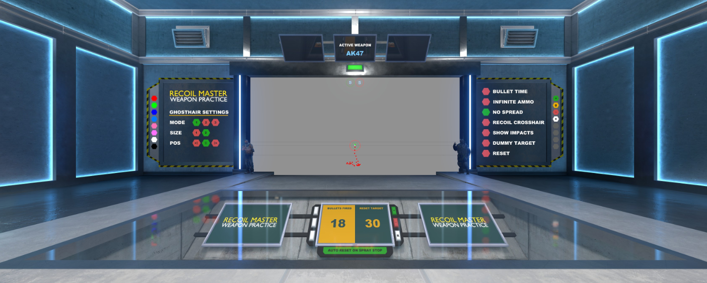Recoil Master — Spray Training (CS2 Edition). Легендарная карта, полностью перенесённая на движок Source 2. Лучшее место для визуального понимания траектории пуль. Включите режим Ghost Hair — синяя точка покажет, куда именно нужно двигать мышкой вниз и в стороны. Ваша задача — просто «приклеиться» прицелом к этой точке, повторяя движение. Тренируйте спрей для AK-47, M4 и других основных стволов, пока движение не станет рефлекторным.