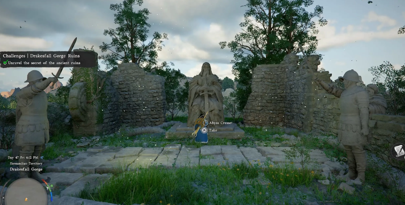 Отправляйтесь на северо-восток региона Хернандия за Холмы невозврата. Встаньте на стартовую плиту и двигайтесь к алтарю исключительно в те моменты, когда главный истукан отворачивается.