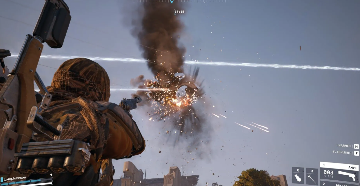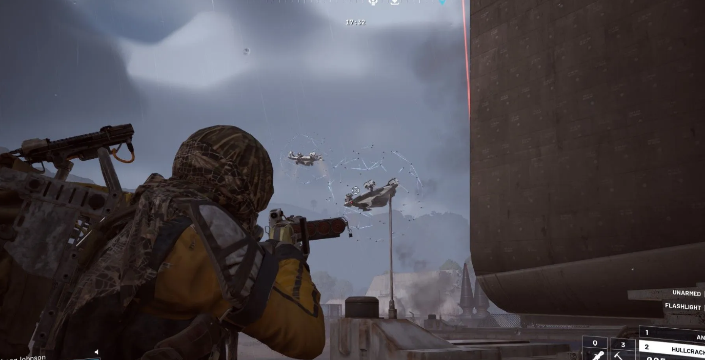 Стрельба по винтам заставляет механизм снизиться, позволяя запрыгнуть на корпус и закрепить мину Дедлайн. Наибольший урон проходит по центральному ядру в нижней части робота. Правильно подобранные предметы экипировки значительно упростят добычу нужных компонентов.