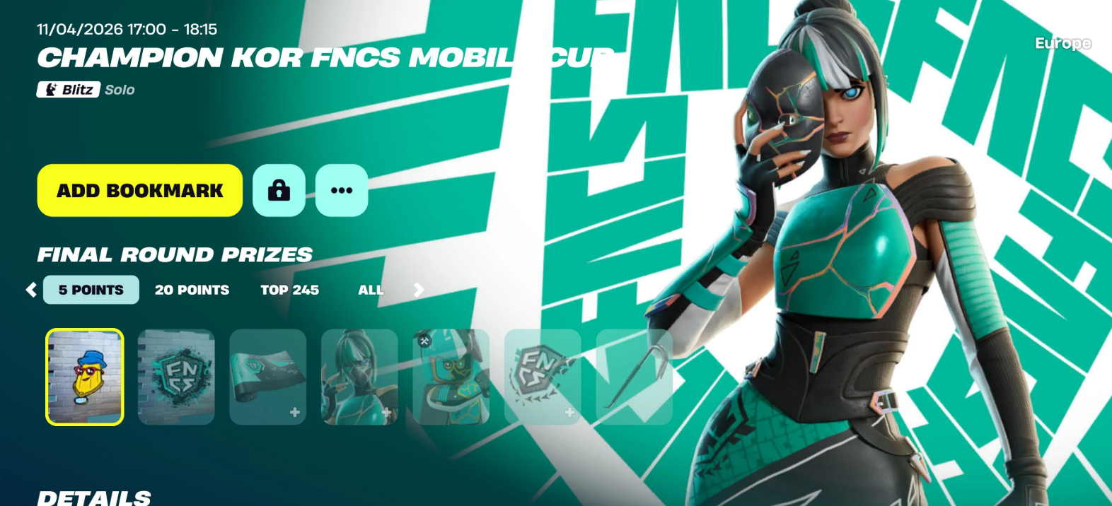Эпические сражения за престижный облик разделены на два формата. Сначала стартует Blitz Solo для владельцев портативных устройств, а затем начнется Battle Royale Duos. Главный приз включает сам костюм, украшение на спину «Эмблема убийцы», кирку «Ломик соперника» и обертку «Победа Кора».