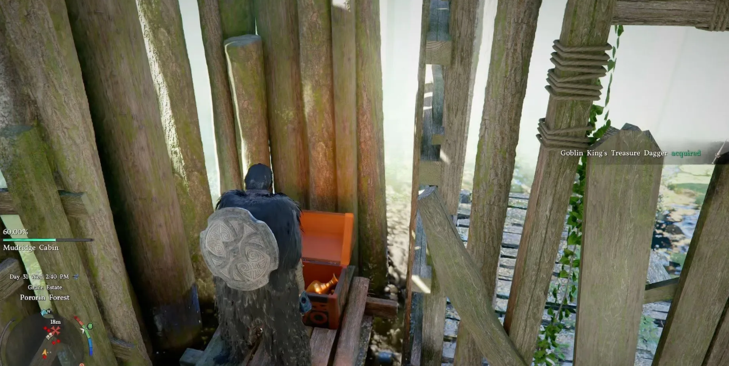 Отправляйтесь на территорию леса Порорин и отыщите Хижину Грязного хребта. Скрытый тайник с нужным оружием стоит снаружи здания за задним углом деревянной постройки.