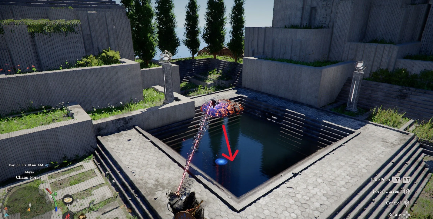 Стартовый этап требует проникновения на территорию острова. Примените способность «Подъем» возле массивных каменных врат. Внутри локации держитесь подальше от колючих зарослей.
