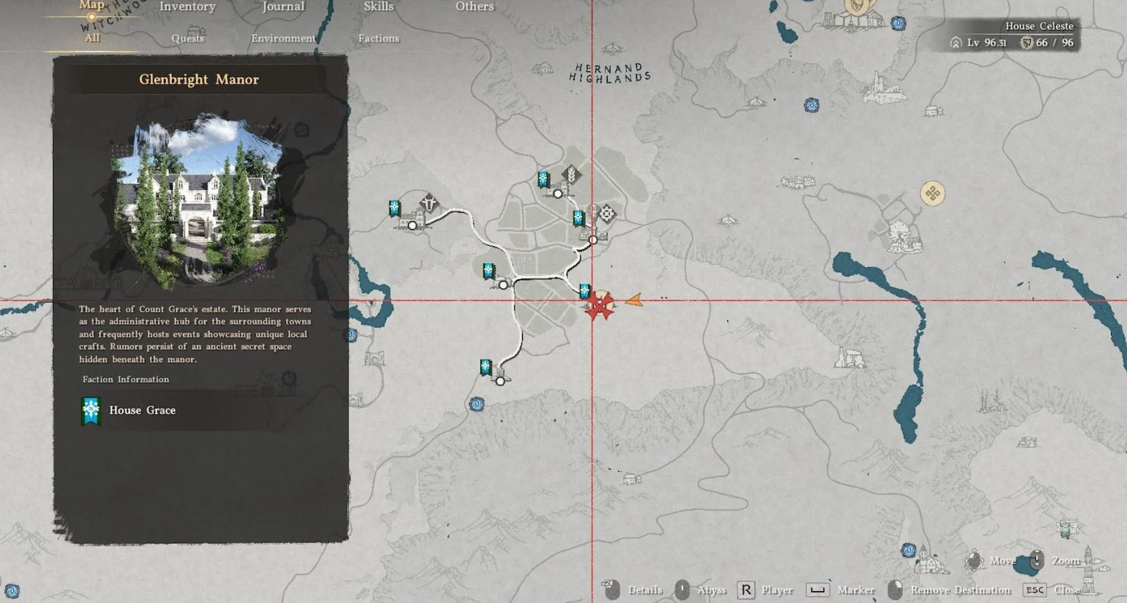 Разверните карту и укажите мастерскую Эмбервинд севернее особняка Гленбрайт