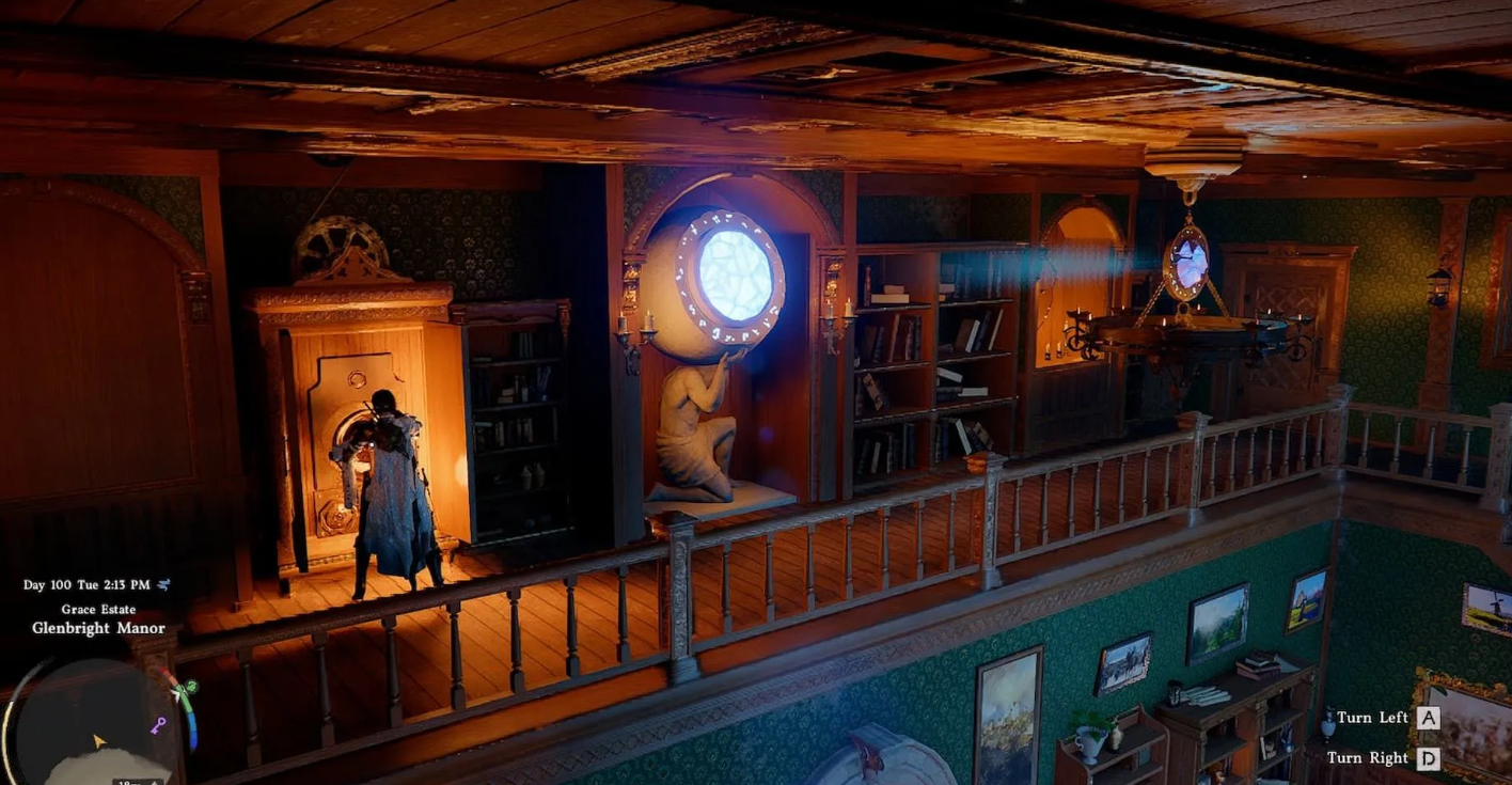 Пройдите вдоль коридора до шкафа стоящего у книжной полки около статуи