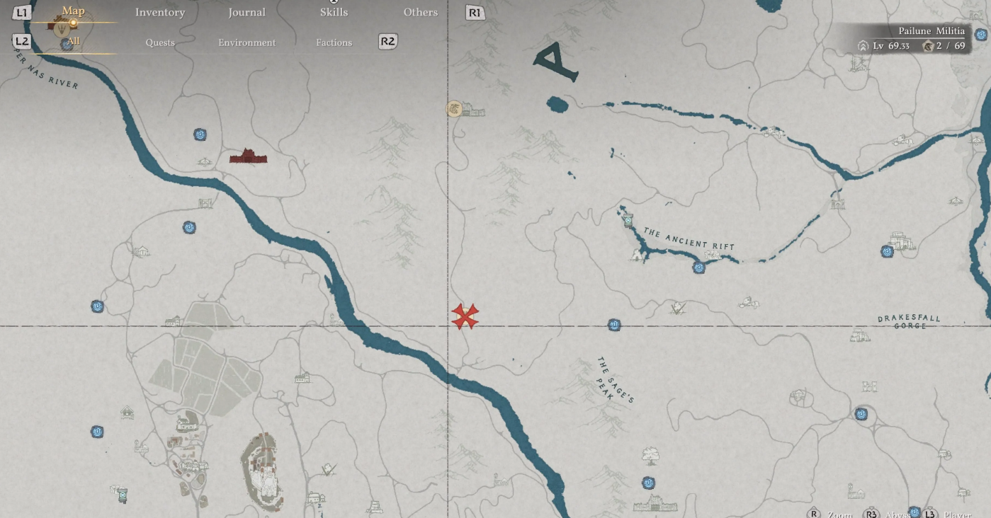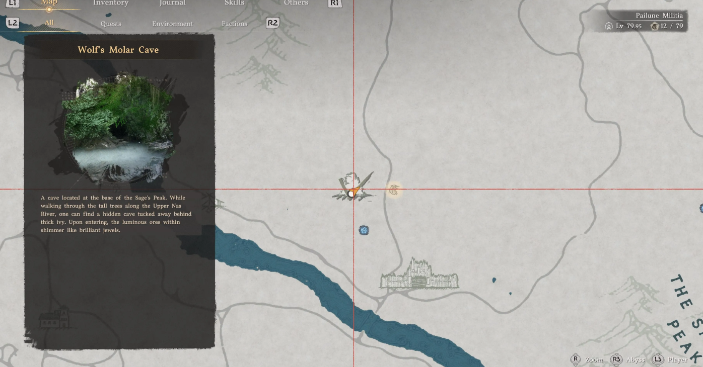 Квестовый маркер укажет направление на юго-запад от поселения, неподалеку от Пика Мудреца. Системная метка приведет вас к пустой точке, поскольку нужная зона скрыта глубоко под землей. Двигайтесь западнее указателя, пока не заметите неприметный проход внутрь пещеры Волчий Клык.