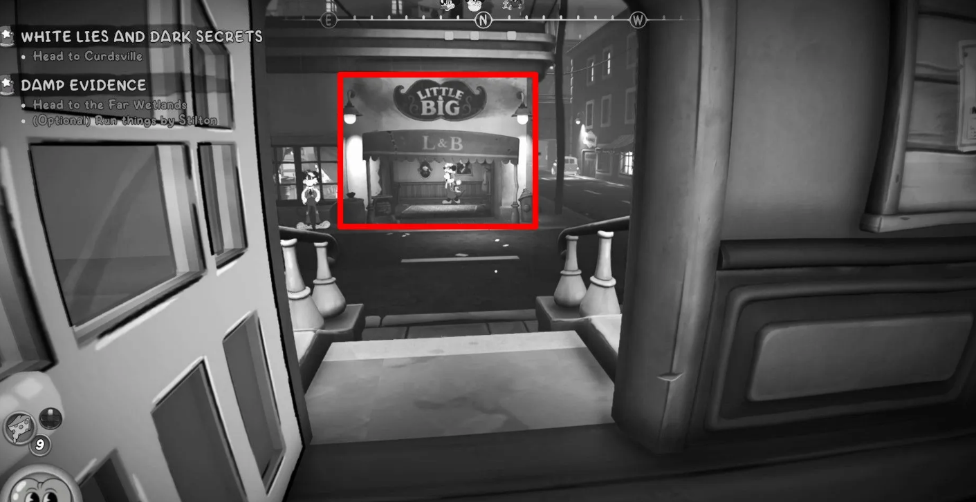 Отправляйтесь к детективному агентству и посетите заведение «Малый и Большой». Там предстоит пообщаться с Джоном Брауном.