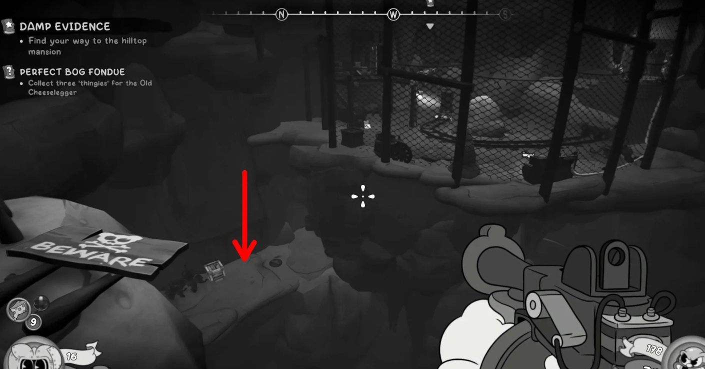 - Первая деталь ждет у левого края тропинки сразу после повторного спуска под землю