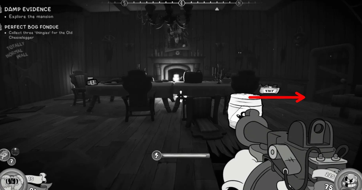 - Вторую штуковину ищите внутри особняка на стопке сыра в северной части столовой