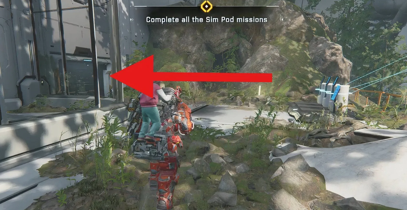 Поднимитесь на лифте, убейте двоих противников и взгляните на левое дерево со второй целью