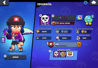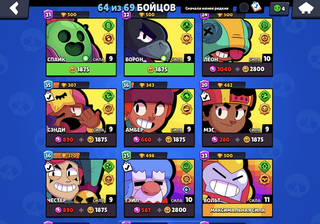 Аккаунт довольно старый, задоначено в районе 9к гемов(всего 81,скин) куплено 5 бравл пассов, практически на каждого персонажа есть по скину, на некоторых по два, хороший аккаунт для поднятия кубков