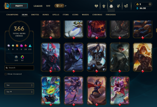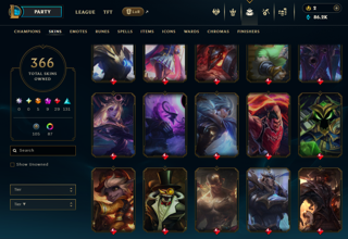 131 Epic скинов, 105 legacy, 192 other, 87 chrome;