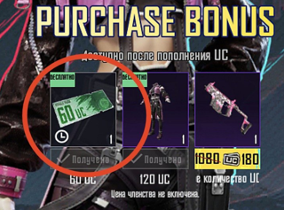 С ПОМОЩЬЮ СКИДОЧНОГО КУПОНА за пополнения 60 UC фото на обложке (если у вас его нету или вы его потратили, вам не будет пополняться баланс дополнительно, вы получите только 325 uc на свой баланс).