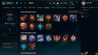 463 уровень, 296 образов : 3 абсолютки, 3 мифических, 24 легендарных, 74 архивки, 128 цветовых схем