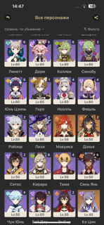 Личный аккаунт в пользовании с 2022 года, не перекуп, райден с 2 + сигна, арлекино с 2 + сигна, невиллет + сигна, Сяо, ху тао + сигна, нахида + сигна, навия + 2 сигны, дехья + сигна, кадзуха с 1, венти, гань юнь, джун ли, странник, многие 4 звездные персонажи с 6, прокачка хорошая, артефакты все на персонажах, 4 проигрыша 50/50 за все время игры..