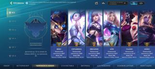Предпочитаемые линии Мид и Поддержка. Макс ранг Алмаз. 7-й уровень мастерства на Векс, 6-й уровень на Серафине, Галио и Эвелин. Остальное в переписке.