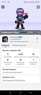 Аккаунт старый, новый дорогой скин есть немного Доната и очень прокачан на игре Bed Wars очень советую для игр