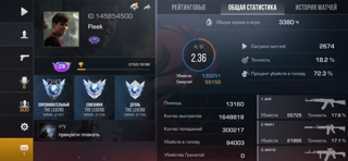 Сочнейший аккаунт бывшего кибоспортсмена, инвентарь на 8500 голды, сильная статистика во всех сезонах, со лидер в теге край