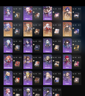 С гарантами баннеры не тянут, выигрыши 50/50 частые, так что в целом акк везучий. Несмотря на старую мету персонажи хорошо справляются с основными режимами. Есть куда стремиться, но составить 2 рабочих пачки несложно. На аккаунте также есть много ресурсов (60 отпечатков судьбы, 45 млн кредитов, 2,5к+ реликвий, материалы прокачки персонажей и т.д.). К учетной записи также привязан менее прокаченный геншин на 34 леги.