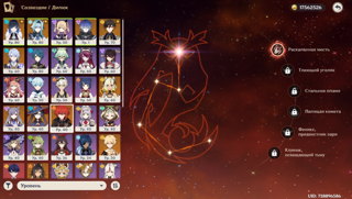 На аккаунте есть из ивент лег - Чжун Ли С1, Эола, Е лань, Флинс, Аято,Шилонен