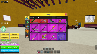 мечи:кдк(вкачан) шарк анчер(вкачан) дарк Блейд(вкачан) и остальные обычные