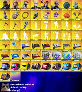 • После покупки вы получите аккаунт Fortnite с 226 скинами. Данные аккаунта предоставляются игрой + данные из вашего электронного письма. Во время смены электронной почты на вашем аккаунте будет задержка.